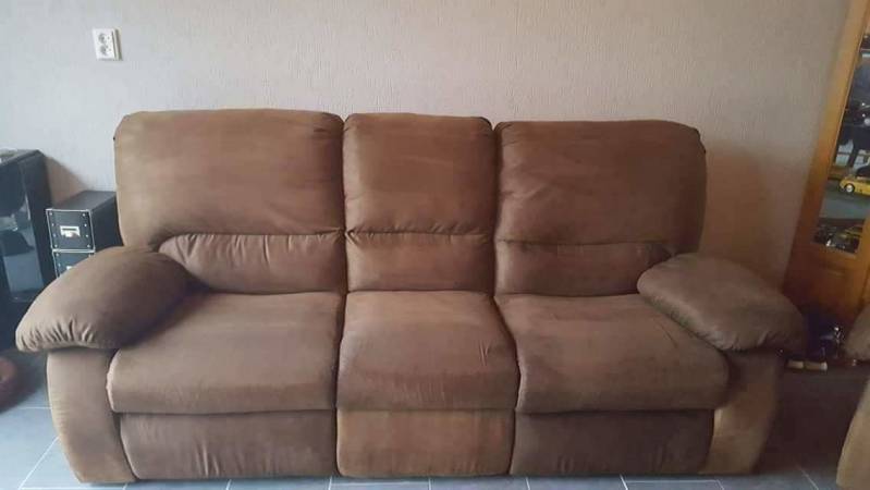 Alcantara meubels slijten niet snel en kunnen makkelijk 15 tot 20 jaar mee maar elk voordeel heeft zijn nadeel en onze ervaring met Alcantara banken is toch dat deze extreem vuil kunnen worden en in de meeste gevallen lijkt het wel alsof de meubels versleten zijn zoals in de onderstaande foto te zien is. Hieronder ziet u een prachtige 3 zitsbank van Alcantara stof, door de jaren heen ziet de bank er niet meer uit en zoals u kunt zien is de bank op de sommige plekken veel donkerder dan de rest. De donkere plekken lijken wel kaal of terwijl versleten maar niets is minder waar, de donkere plekken op de banken zijn vetvlekken die ontstaan zijn doordat huisdieren zoals honden en katten op de bank mogen en dat in combinatie met vlekkenreinigers die op erop worden gespoten in de hoop de vlekken te verminderen. De dikke vetlaag op de bank is niet met een doekje en een beetje water te verwijderen maar moet professioneel behandeld worden en wij van CleanZit zijn helemaal weg van deze prachtige vervuilde alcantara banken want zoals u onderaan kunt zien kunnen we Alcantara banken prachtig omtoveren.